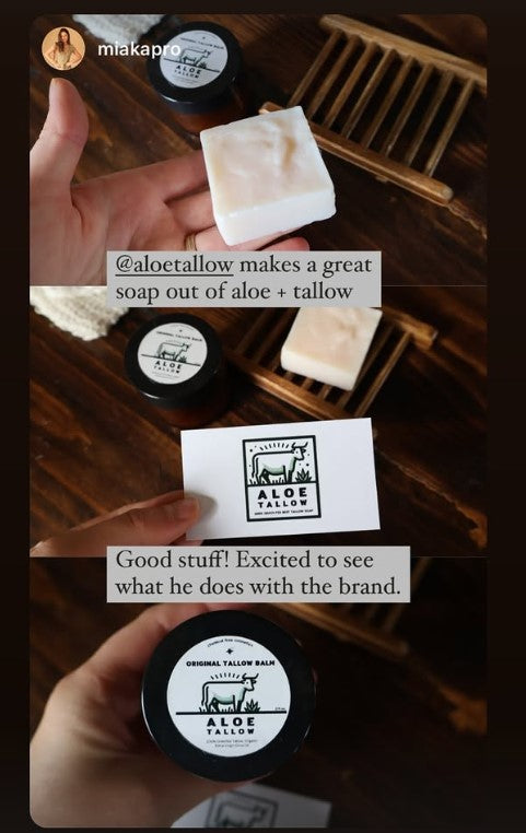 Searching for a true natural soap can be difficult. The majority of "natural" soaps still have a lot of other bulls**t in it. Maybe they have 5 ingredients instead of 20, but if you actually look into the ingredients it is not stuff you really want to put on your body. Palm oil, fragrance, etc. We realize this, and created aloe tallow. We're literally two ingredients. and it works better than anything you've ever used before.